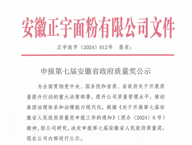 申報(bào)第七屆安徽省政府質(zhì)量獎公示